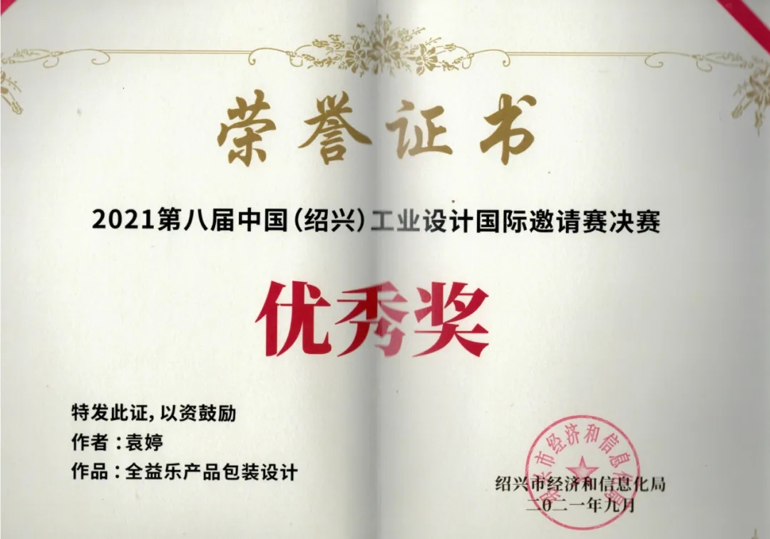 我司設(shè)計(jì)的全益樂(lè)產(chǎn)品包裝在比賽中獲得優(yōu)秀獎(jiǎng)。
