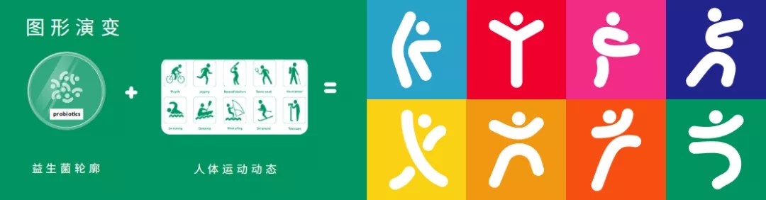 此次包裝主題為“青春洋溢的益菌運(yùn)動(dòng)派對(duì)”,以益生菌輪廓與人運(yùn)動(dòng)形態(tài)相結(jié)合,演變?yōu)楫a(chǎn)品主視覺(jué)圖形,倡導(dǎo)健康飲食、合理運(yùn)動(dòng)的生活理念,實(shí)現(xiàn)“益菌,益人,益健康”。